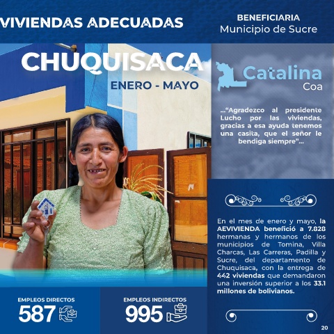 1.552 CHUQUISAQUEÑOS CUENTAN CON VIVIENDAS ADECUADAS
