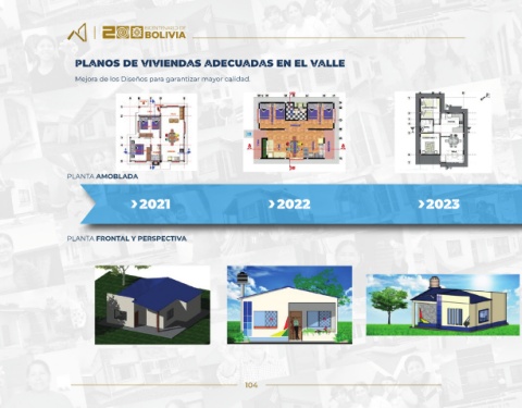 PLANOS DE VIVIENDAS ADECUADAS EN EL VALLE Mejora de los Diseños para garantizar mayor calidad. PLANTA AMOBLADA 2021 2022 2023 2024 2025 PLANTA FRONTAL Y PERSPECTIVA 104