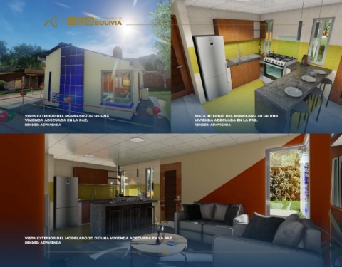VISTA EXTERIOR DEL MODELADO 3D DE UNA VIVIENDA ADECUADA EN LA PAZ.