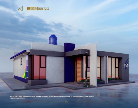VISTA EXTERIOR DEL MODELADO 3D DEL MODELO DE VIVIENDA ADECUADA EN EL DEPARTAMENTO DE ORURO RENDER: AEVIVIENDA 128