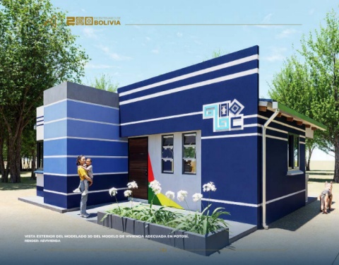 VISTA EXTERIOR DEL MODELADO 3D DEL MODELO DE VIVIENDA ADECUADA EN POTOSÍ. RENDER: AEVIVIENDA 132