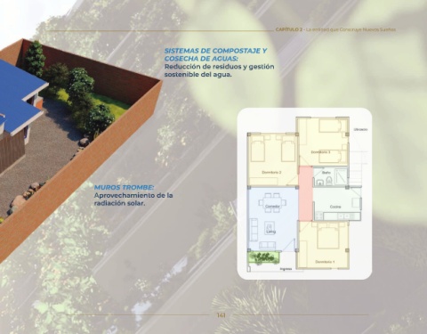 CAPÍTULO 2 - La entidad que Construye Nuevos Sueños SISTEMAS DE COMPOSTAJE Y COSECHA DE AGUAS: Reducción de residuos y gestión sostenible del agua. MUROS TROMBE: Aprovechamiento de la radiación solar. 141