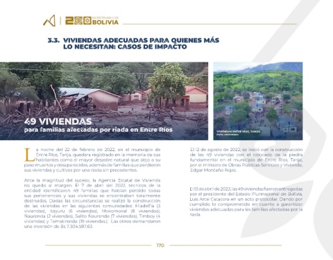 para familias afectadas por riada en Entre Ríos VIVIENDAS ENTRE RÍOS, TARIJA.