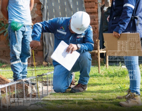 DIRECTOR GENERAL EJECUTIVO DE LA AEVIVIENDA INSPECCIONANDO LA CONSTRUCCIÓN DE VIVIENDAS. FOTO: AEVIVIENDA