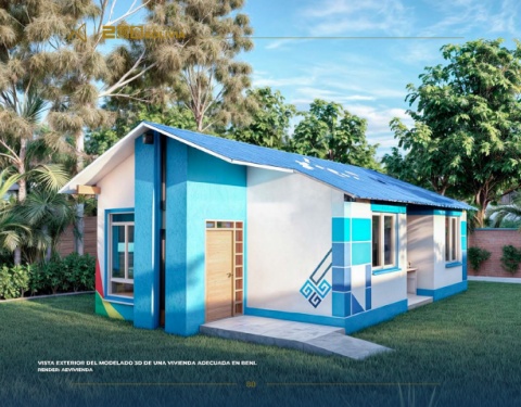 VISTA EXTERIOR DEL MODELADO 3D DE UNA VIVIENDA ADECUADA EN BENI. RENDER: AEVIVIENDA 88