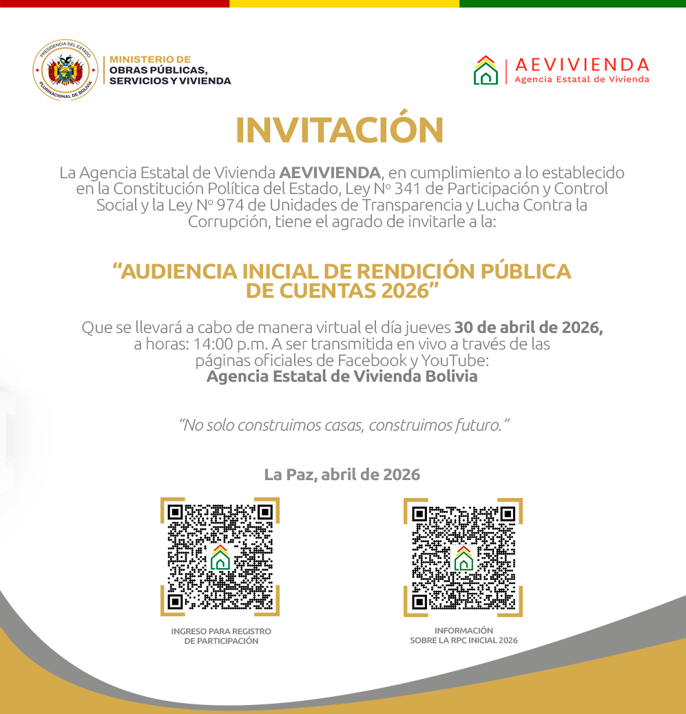 En el marco de la política nacional de vivienda social impulsada por el Ministerio de Obras Públicas, Servicios y Vivienda, la Agencia Estatal de Vivienda (AEVIVIENDA) realizó la entrega de viviendas cualitativas en los departamentos de Tarija y Cochabamba, reafirmando el compromiso del Estado con el acceso a una vivienda digna para las familias bolivianas.