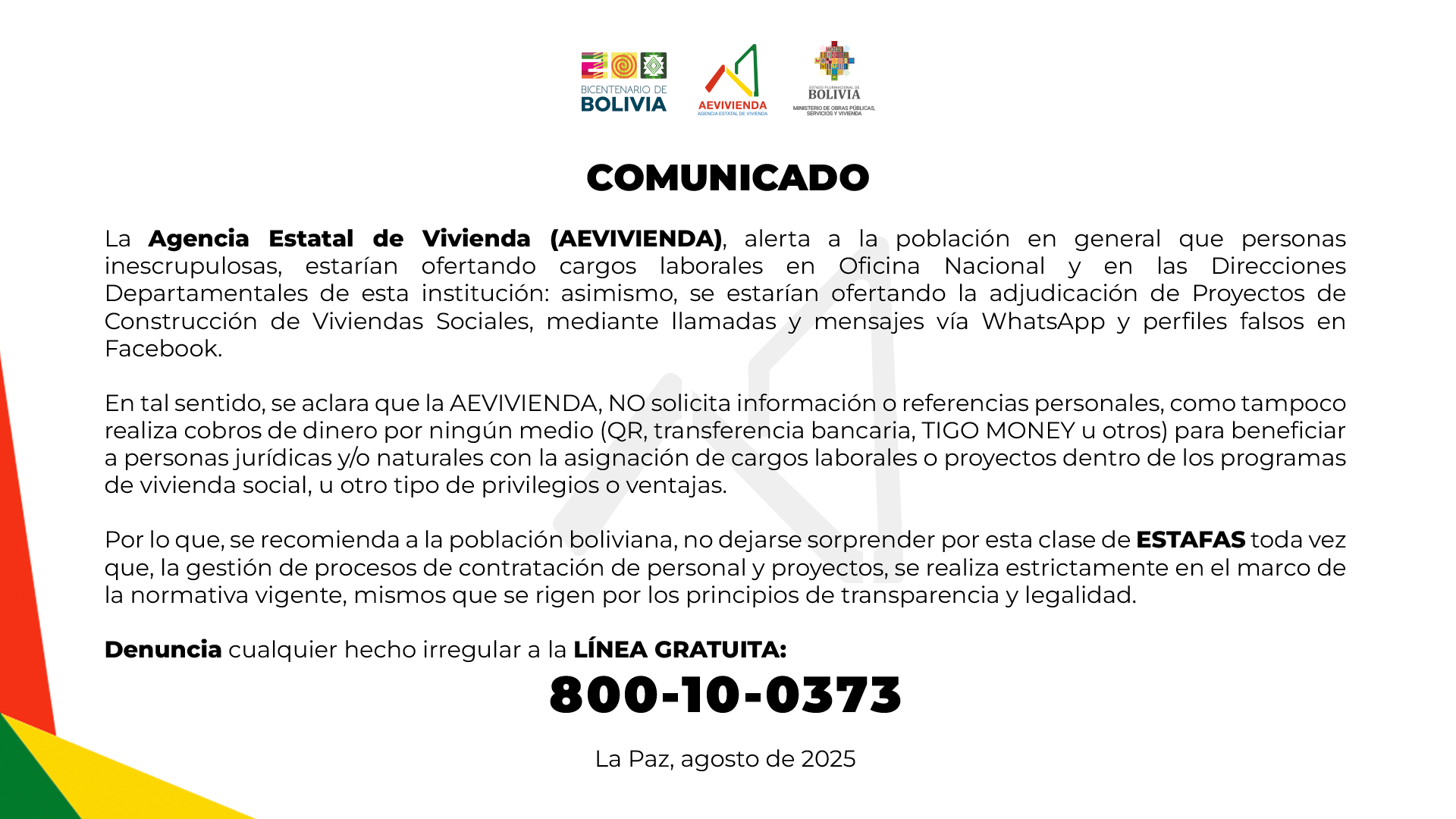 AEVIVIENDA COMUNICADenuncia cualquier hecho irregular
